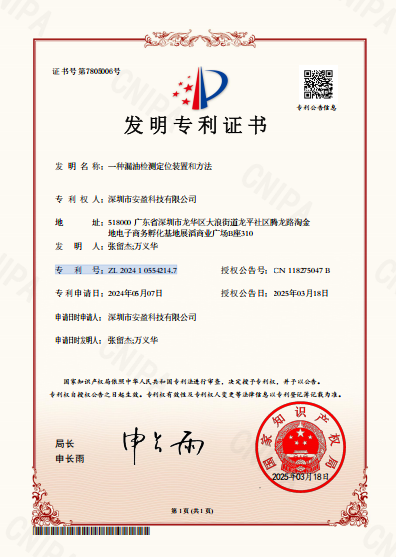 3月18日消息,深圳市安盈科技有限公司收到由中華人民共和國(guó)國(guó)家知識(shí)產(chǎn)權(quán)局頒發(fā)的一項(xiàng)《發(fā)明專利證書》,安盈科技自主研發(fā)的漏油監(jiān)測(cè)系統(tǒng)——“一種漏油檢測(cè)定位裝置和方法”榮獲國(guó)家發(fā)明專利,專利號(hào):ZL 2024 1 0554214.7。這一成果標(biāo)志著安盈科技在工業(yè)安全監(jiān)測(cè)技術(shù)領(lǐng)域的領(lǐng)先地位,也為行業(yè)漏液監(jiān)測(cè)提供了創(chuàng)新解決方案。...